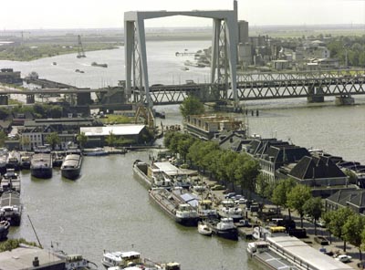 Panorama over de Kalkhaven naar de bruggen over de Oude …