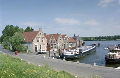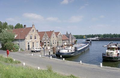 Boezemkade langs de Binnenmaas richting de Dorpskerk in …