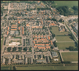 Luchtfoto van Numansdorp in oostelijke richting. Links de …