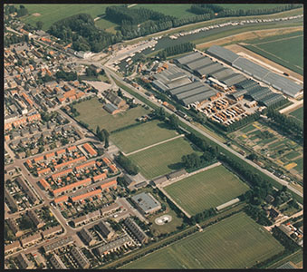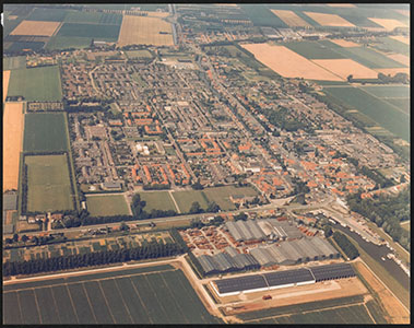 Luchtfoto van Numansdorp met rechtsboven de Dorpshaven en …