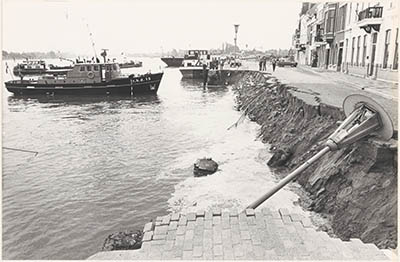Ingestorte Merwekade, gezien richting Papendrechts veer.