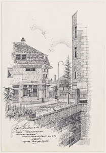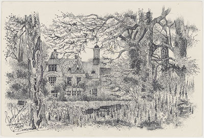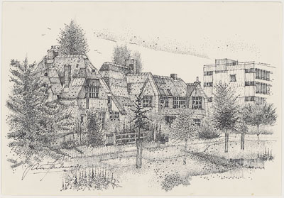 Een deel van de villa en huizen aan de Rozenhof.