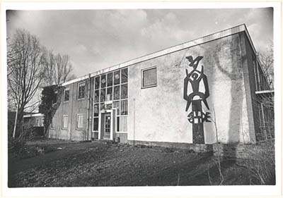 Voorgevel van jeugdherberg De Meerpaal aan de Noordendijk.