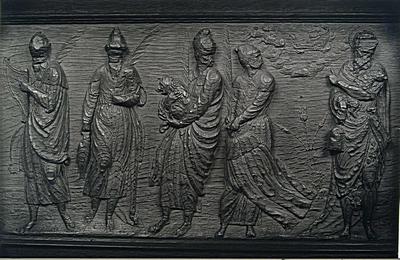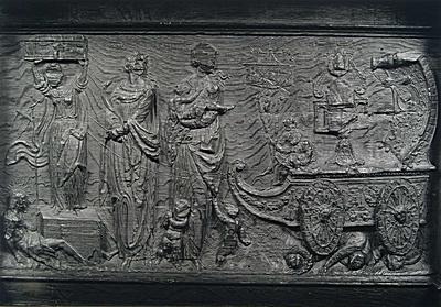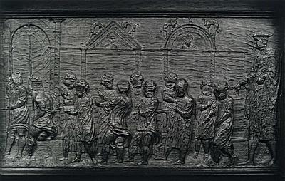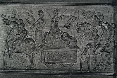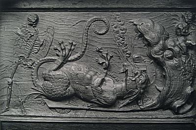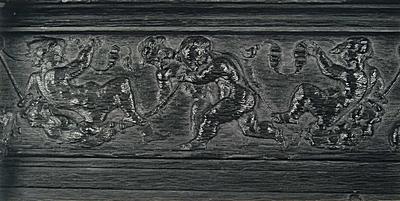 Voorstelling in houtsnijwerk in de bovenranden van de …