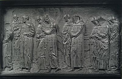 Voorstelling in houtsnijwerk in de panelen van de …