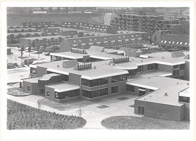 Het bijna gerede scholencomplex voor 3 basisscholen aan …
