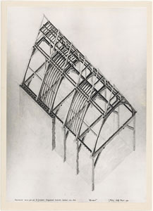 Axonometrische projectie van de kap en de grote zaal van …