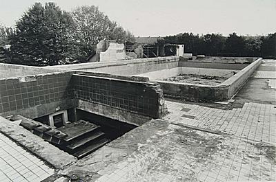 Restanten van het afgebrande en gedeeltelijk gesloopte …
