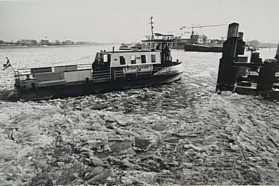 Veerpont Papendrecht - Dordrecht nadert over de Merwede …
