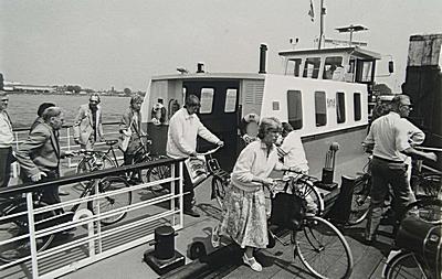 Fietsers verlaten de veerpont Papendrecht - Dordrecht aan …