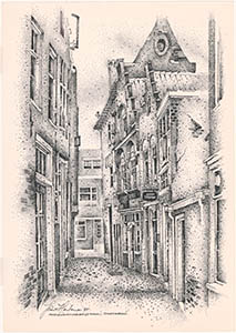 Tekening door Jan Hensema van de Schuitemakersstraat …