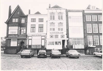 Huizen aan de Merwekade tussen het Bolwerk en de Boombrug.