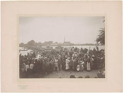 Koninging Wilhelmina woont oefening van korps Pontonniers …
