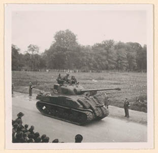Defilé van Canadese tanks op de Krispijnseweg.