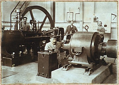 Machinekamer van met personeel.