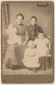 Portret van een moeder met baby, peuter, kleuter en een …