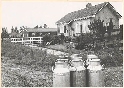 Een naoorlogs huis, vrijstaand, met erachter een loods …